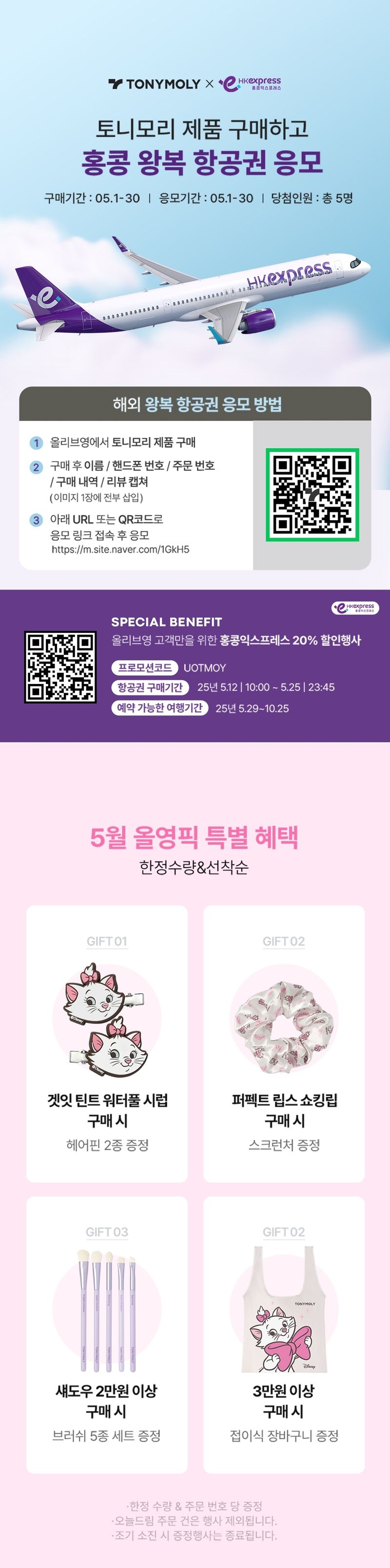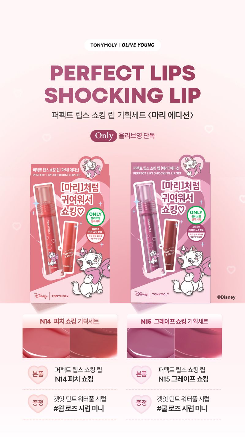(25.05.01 ~ 25.05.30)韓國 Olive Young 特別優惠套裝 - Disney Marie X Tony Moly Perfect Lips Shocking Lip Tint 驚艷唇彩 ( + Marie 髮圈)